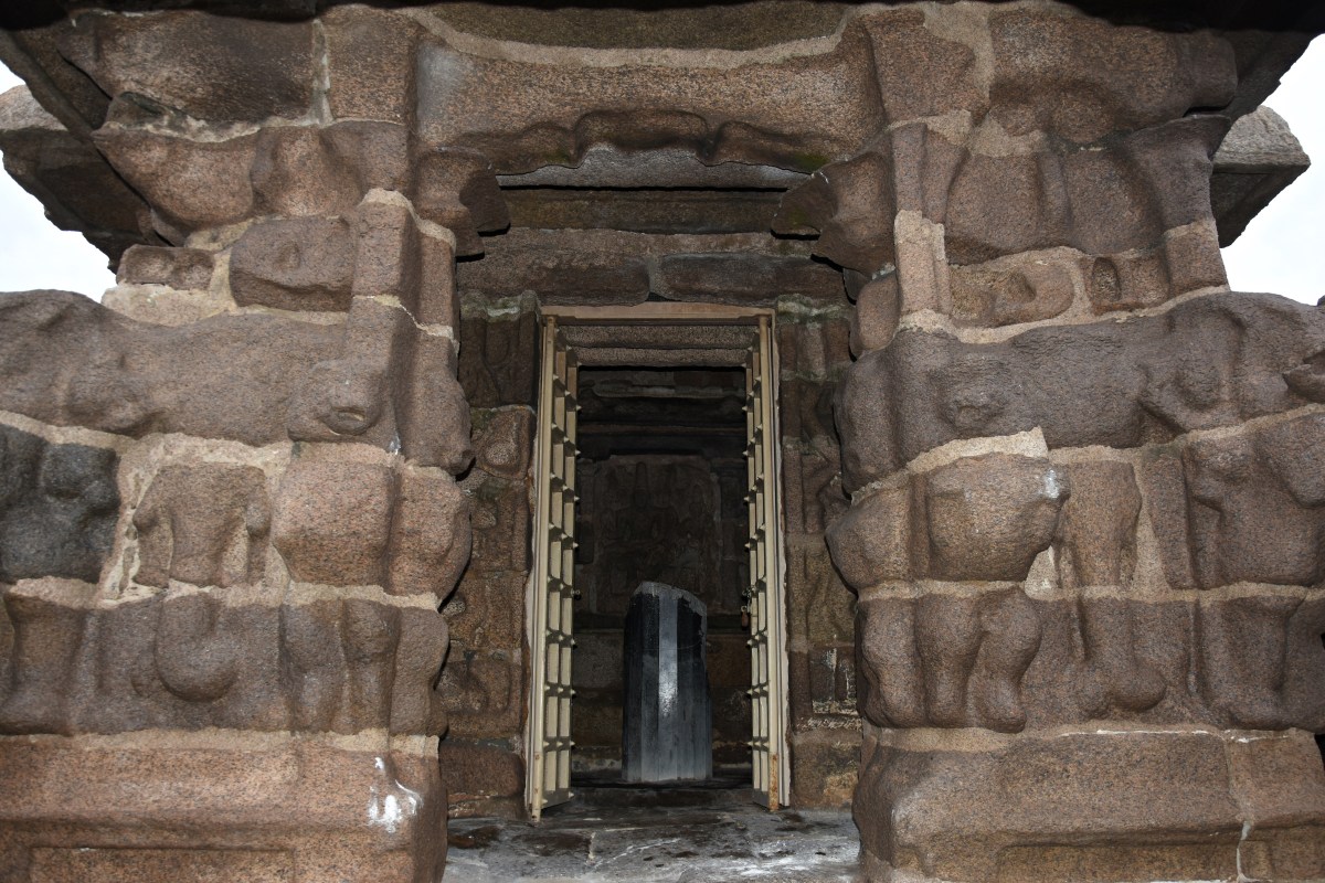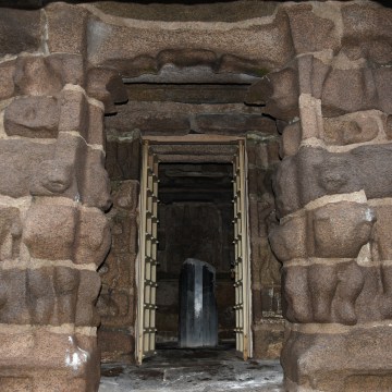 ‘DSC_9097 – The main shrine of east facing Kshatriyasimha Pallavesvara Griham -Dharalingam,6ft high,dilapidated.’
