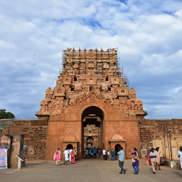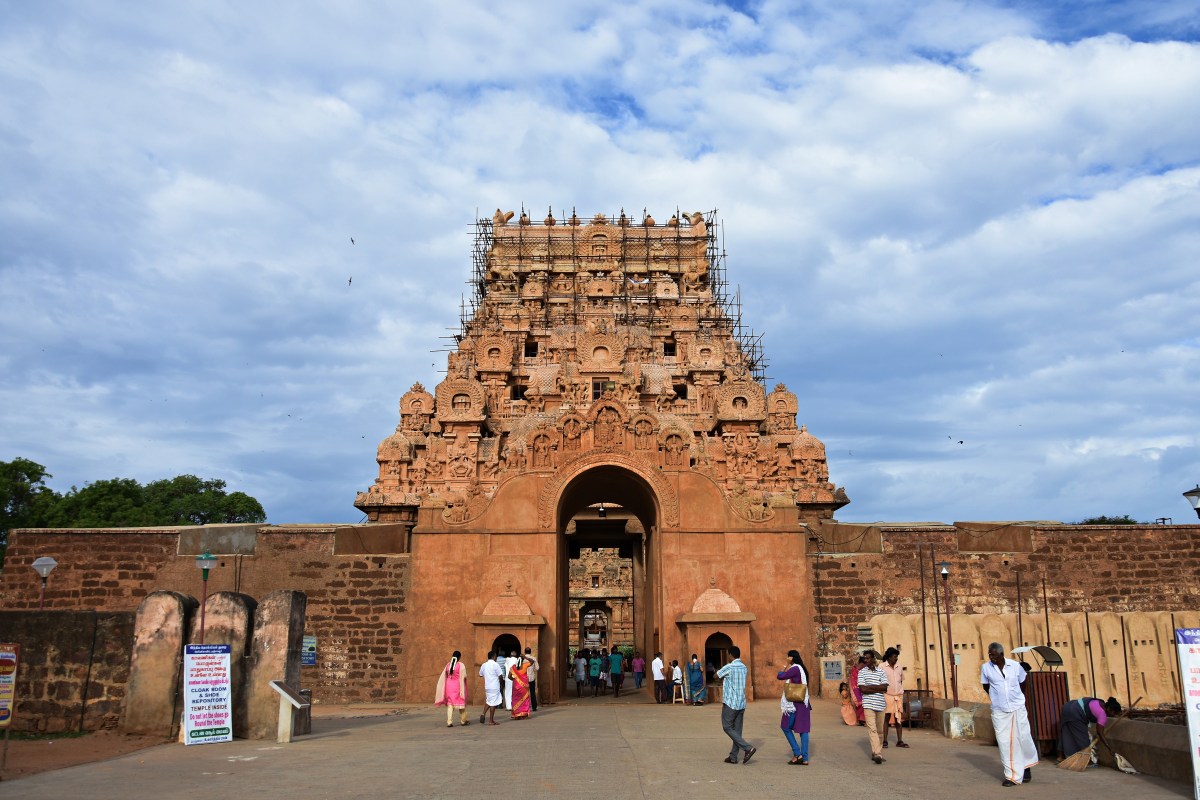 ‘DSC_0125 – Repair works are done on the Keralanthagan gopura behind the Maratha entrance.’