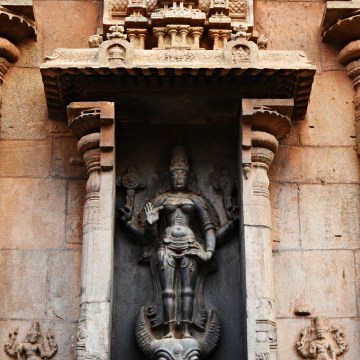 ‘DSC_0505 – Mahishasuramardhini Durga relief above the Komugham – N side of E facing Karthikeya shrine.’